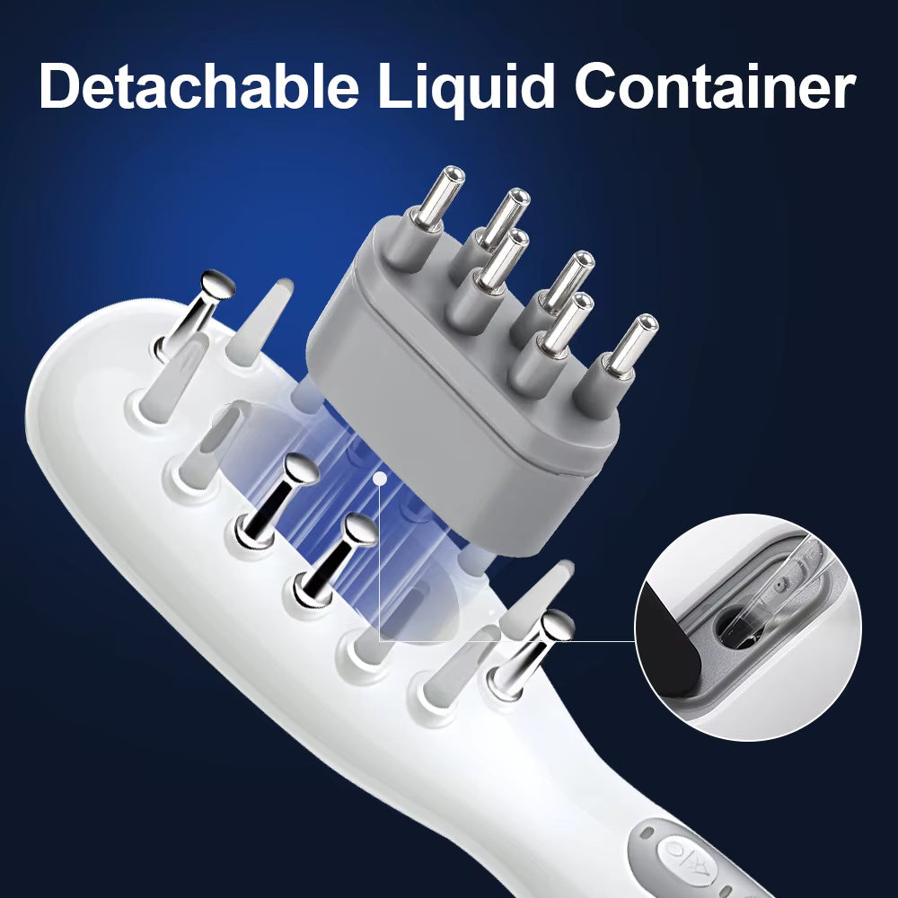 The detachable 8ml liquid reservoir allows you to apply hair oils, serums, and growth solutions evenly across your entire scalp—no more wasted product or uneven coverage. The six liquid-conducting silicone bead teeth ensure consistent, drip-free distribution every time.